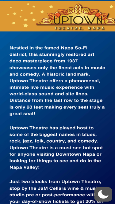 70%Nestled in the famed West End district, this stunningly restored art deco masterpiece from 1937 showcases only the finest acts in music and comedy. A historic landmark, the Uptown offers a phenomenal, intimate live music experience with world class sound and site lines.