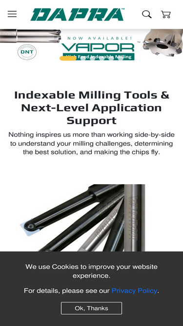 99%for more than 65 years, dapra has provided indexable milling, workholding, and power tool solutions to a wide array of manufacturing segments including aerospace, automotive, mold and die, and firearms.