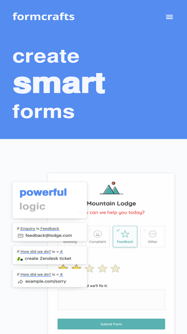 73%create beautiful, modern forms using formcrafts' drag-and-drop form builder. build applications forms, lead generation forms, surveys, and much more.