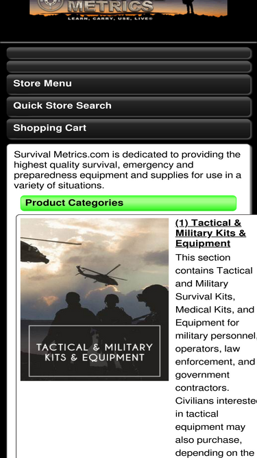 Personal survival kits, medical kits, and other items relating to preparing for emergency wilderness travel situations.