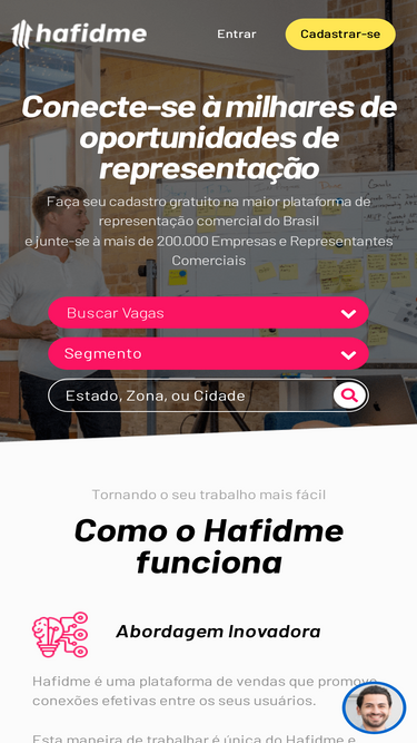 descubra a hafidme, a plataforma inovadora que conecta representantes comerciais a milhares de oportunidades de representação e vendas. aumente suas vendas e expanda seus negócios com nossas soluções de planejamento e relacionamento assertivo.