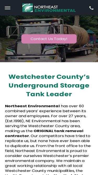 63%Northeast Environmental of Westchester County, NY, is your go-to for fuel tank installation and clean-up. Call 914-777-1930.
