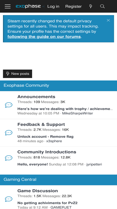 87%gaming community offering trophy and achievement tracking across psn, xbox, and steam
