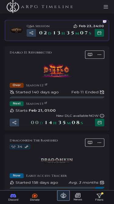 88%Track your favorite aRPG game seasons