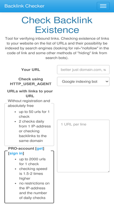 94%online tool for checking existence of backlinks, their quality - dofollow or nofollow - and can these backlinks be indexed by selected search bot or not