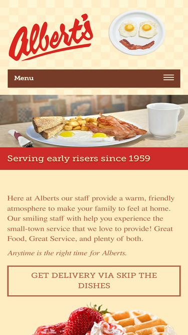 68%Albert's is the Edmonton, Red Deer, and Vegreville perfect family restaurant. With 55+ years serving your favourites: pancakes, eggs, bacon, and more!