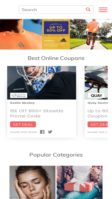 89%coupongreat.com is a coupon portal that allows shoppers to get and share coupons and discounts for over 30,000 online stores.
