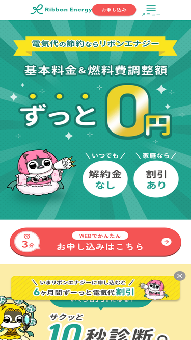 92%リボンエナジーなら基本料金0円、燃料費調整額0円!さらに、マイページで電気の安い時間帯を確認すれば誰でも簡単に電気代を節約できます。まずは無料見積もりをお試しください。