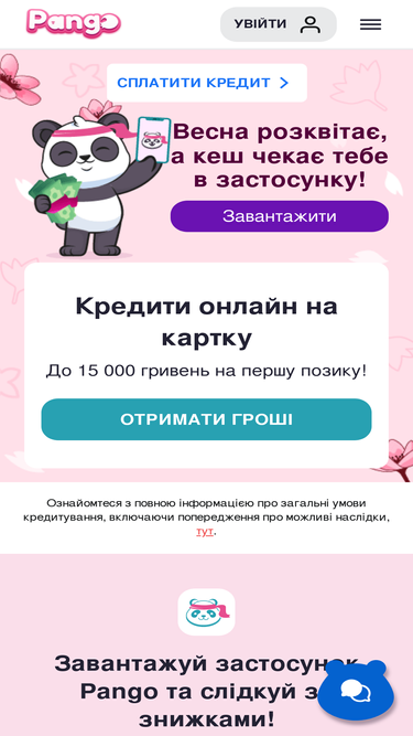 64%Підкачайся ГРОШИМА та ПОДАРУНКАМИ від Pango! Бери кредит з 20 по 31 березня та отримай шанс отримати суперприз або ГРОШІ у подарунок! Отримати приз + ГРОШІ Зустрічай весну з БІГОВОЮ ДОРІЖКОЮ або ХАПАЙ 20К! Серед призів: смарт-годинник, камера Pola...