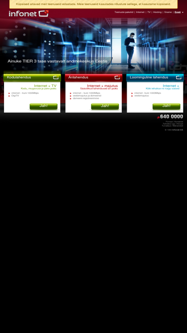 100%infonet as - internet service provider since 1993 in estonia. internet, digital television, hosting, domains, virtual servers and server colocation, mobile internet and telephony, hdtv, 1000mbps.