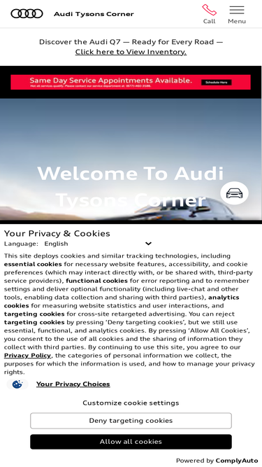 86%Get an instant trade-in appraisal at Audi Tysons Corner in Vienna, VA. Find out your vehicle’s value and upgrade to a new or certified Audi today.