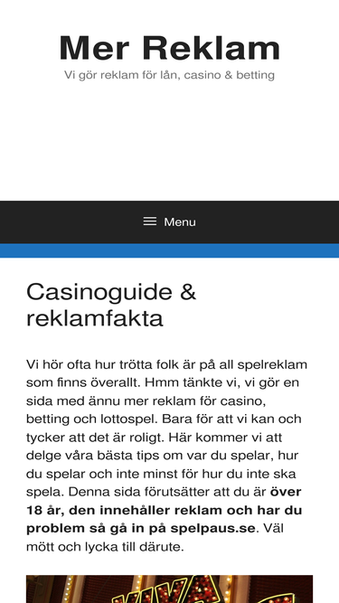 100%Vi hör ofta hur trötta folk är på all spelreklam som finns överallt. Hmm tänkte vi, vi gör en sida med ännu mer reklam för casino, betting och lottospel. Bara för att vi kan och tycker att det är roligt. Här kommer vi att delge våra bästa tips om var du spelar, hur du spelar ... Read more