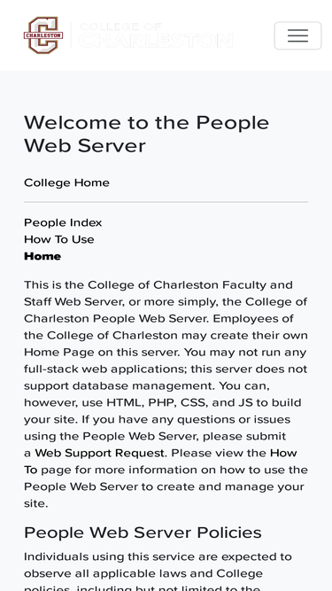 the college of charleston people web server allows cofc faculty and staff to develop and host their own websites on-premise.
