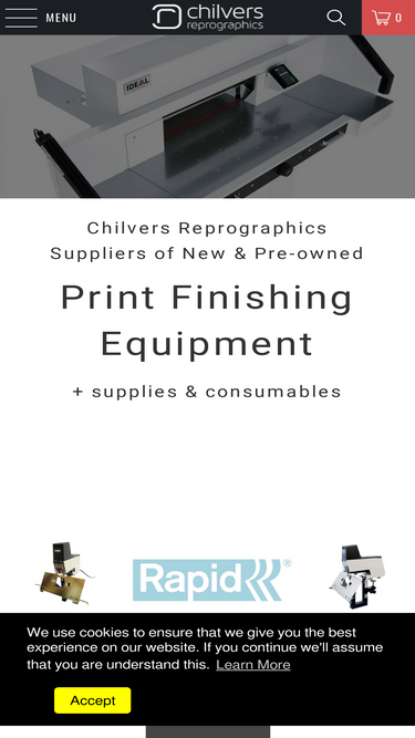 85%Chilvers Reprographics established in 1965 supply a wide range of new and used/pre-owned print finishing equipment as well as supplies, consumables and spare parts.