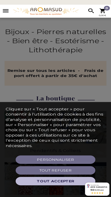bijoux, perles pierre naturelle et minéraux de collection en vente sur le site en ligne de lithothérapie, d'aromathérapie, d'ésotérisme et de bien-être aromasud