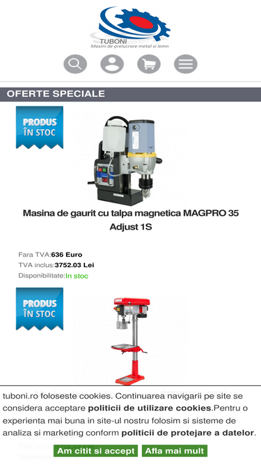 99%Date tehnice: Masina de gaurit cu talpa magnetica MBM450LRE Filetare DA Diametru de gaurire maxim cu carota 45 mm Adancime maxima de gaurire cu carota 35 mm Diametru de gaurire maxim cu burghiu spiralat 19 mm Adancime maxima de gaurire cu burghiu spiralat 110 mm Filetare maxim M 18 Turatii 100 - 250 rpm / 180 - 450 rpm (stanga / dreapta) Sistem de prindere MK 2 Distanta maxima adaptor /placa de baza 240 mm Forta magnetica de fixare 15000 N Dimensiuni baza magnetica 165 x 80 x 50 mm Putere cedata a motorului S1 100% 1,65 kW (2,21 CP) Tensiune de alimentare 230 V Greutate neta 12 kg - Pentru filetare - Perfect pentru gaurirea pieselor de oțel voluminoase - Permite un tratament mobil cu ghidaj precis - La fel și pentru găurirea verticală - eficientă și precisă - Prin activarea electromagnetului, mașina de găurit poate fi prinsă pe fiecare piesă de oțel. - Pentru industria construcțiilor, podurilor și construcțiilor navale - Unitate multifuncțională cu curse dreapta și stânga, viteză reglabilă, control al vitezei și tăietor de filet. Accesorii standard: Masina de gaurit cu talpa magnetica MBM450LRE Lant de siguranta Mandrina Weldon Mandrina B13 Geanta de transport din plastic Rezervor lichid de racire Dispozitiv interschimbare rapida Viteza variabila Scule Manual de utilizare