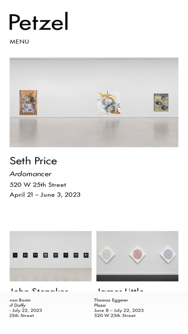 100%Petzel is a contemporary art gallery in New York, representing over forty international artists and estates. The gallery has hosted groundbreaking and unique exhibitions in diverse media and genres. Engaged in both primary and secondary markets, Petzel has nurtured the careers of some of today’s most influential artists and has sustained long-term relationships with a broad and international roster of artists.