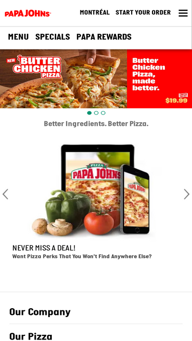 82%Get the real Papa Johns taste now – order fresh cooked pizza, sides, drinks and desserts online for delivery or takeaway. Better ingredients. Better pizza.