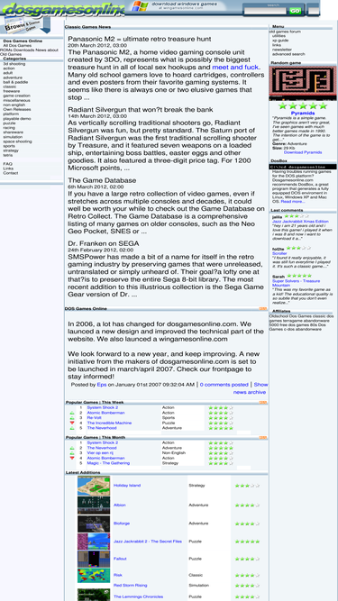 100%free downloads of over 550 classic pc games. over 350 dos games can be played in an online emulator. attempts to archive every version of each game, with source code; provides ordering information for games that are still sold.