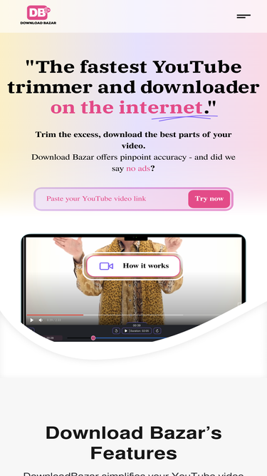 69%DownloadBazar makes it easy to trim and download YouTube videos. Remove unwanted sections of YouTube videos. Keep only the parts you want. Download as MP3/MP4 and more. Free and simple online YouTube trimmer.