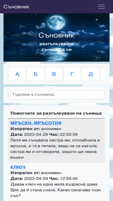 100%Съновник: тълкуване на сънища, осъзнато сънуване и съвети за по-добър сън. Богат каталог с тълкувания на сънища. Споделете и обсъдете сънищата си.