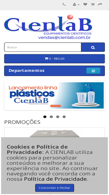 91%a loja virtual da empresa cienlab oferece artigos, produtos e equipamentos para laboratório, atuando nos setores alimentício, químico, petroquímico, pesquisa e educação.