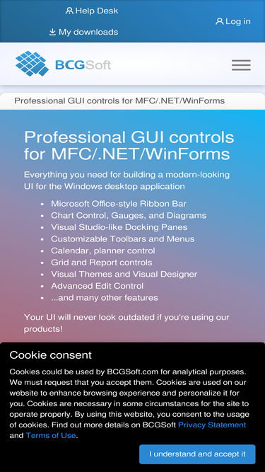 76%bcgsoft: win32 gui controls for mfc and winforms. the gui toolkits include ribbon, toolbars, docking panes, grid, chart, calendar, gauges, skins and more.