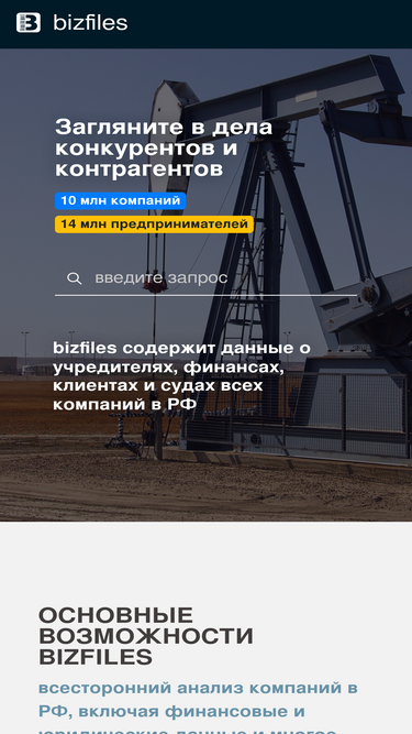 71%bizfiles содержит данные о учредителях, финансах, клиентах и судах всех компаний. Находите по ИНН, ОГРН, имени или адресу. Изучайте владельцев, связи, бухгалтерскую отчётность и судебные дела компании. Оценивайте риски.