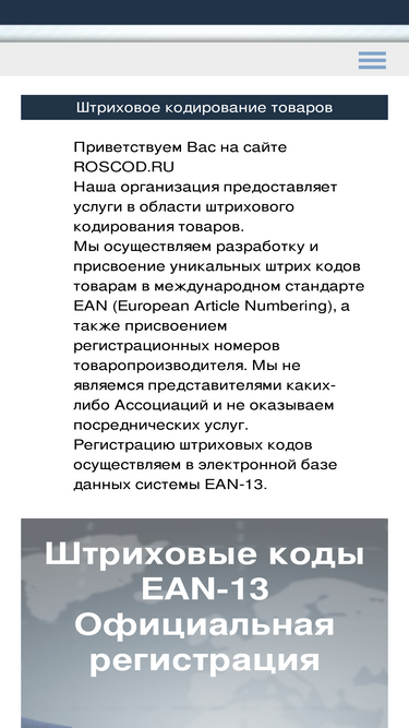 87%Роскод - разработка, присвоение и регистрация штрих-кодов в электронной базе EAN-13. Заказать купить получить штрих код roscod.ru тел.8(495)220-81-02. .