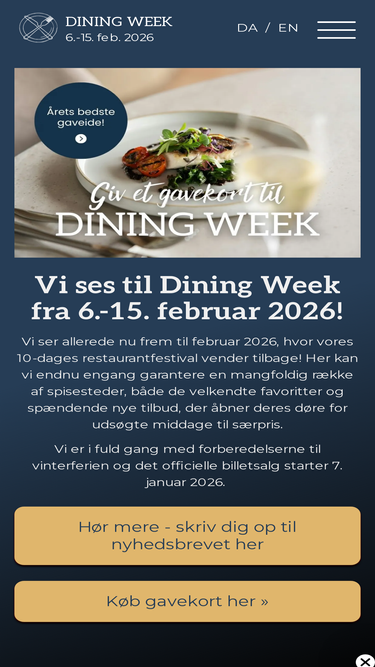 57%Dining Week er Nordens største restaurantfestival og har eksisteret siden 2011. Hvert år samler Dining Week mere end 200 af landets bedste restauranter.