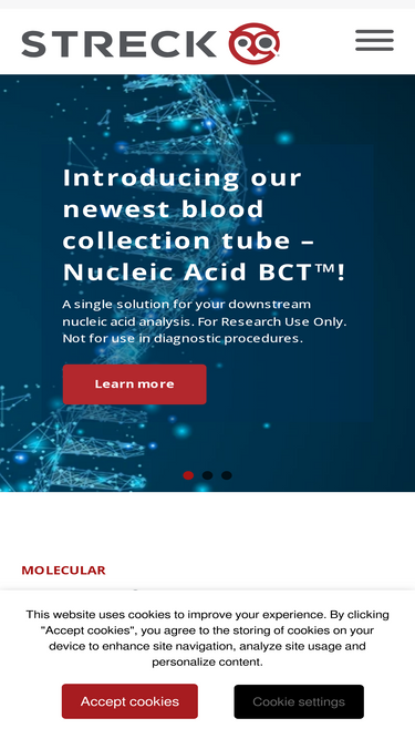 98%Streck develops and manufactures products in hematology, immunology, molecular diagnostics, cell stabilization, infectious diseases for clinical and research laboratories. Streck is located in La Vista, near Omaha Nebraska.