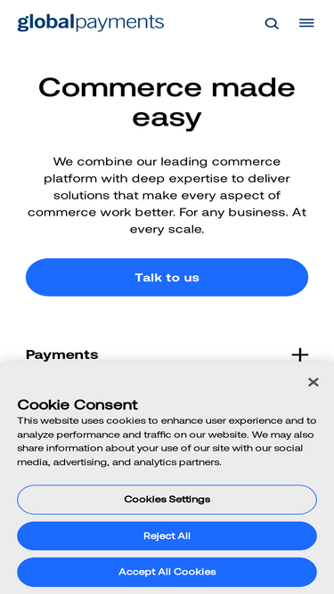 74%global payments is a world leader in financial technology solutions. accept credit and debit cards with our pos systems, online and mobile payment solutions.