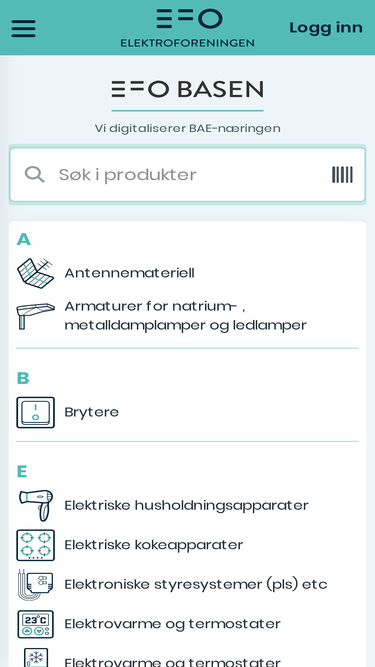 efobasen skal være masterdatabasen for elektroprodukter. det innebærer at leverandører registrerer alle sine produkter med all produktinformasjon i basen, og at grossister, elektrikere, rådgivere, arkitekter og alle andre som har behov for produktinformasjon bruker efobasen som kilde til denne.