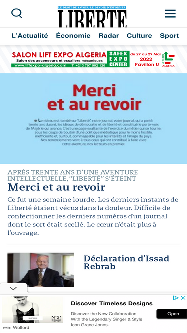 A la Une : Retrouvez toute l'actualité en Algérie, à l'international et toute l'actualité en continu politique, Economie, Société, Culture et Environnement avec Liberté