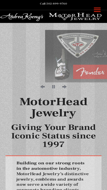 99%MotorHead Jewelry Giving Your Brand Iconic Status since 1997 Building on our strong roots in the automotive industry, MotorHead Jewelry’s distinctive jewelry, emblems and awards now serve a wide variety of corporate branding clients including Fender Guitars, Berkshire Hathaway, and Schula’s Steakhouse, as well as automotive industry giants like Fiat Chrysler, Ford and Mercedes. Projects…