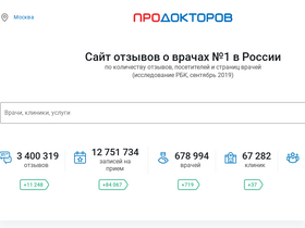 75%крупнейший сайт отзывов о врачах и клиниках россии. более четырёх миллионов честных отзывов пациентов. поделитесь своим мнением о лечении - внесите вклад в народный рейтинг!