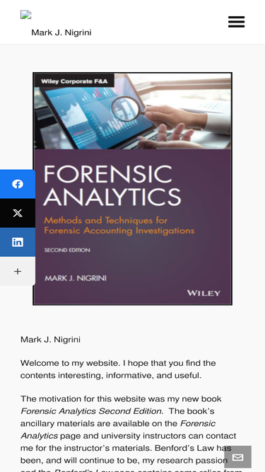 100%My website contains information and images related to my research passion, Benford's Law, together with ancilliary materials for my book Forensic analytics. Other content includes a description of my YouTube channel, my resume, and a listing of the topics covered in my conference sessions and forensic accounting workshops.