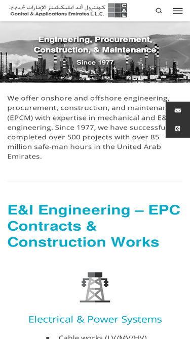 CAE offers E&I and mechanical engineering, procurement, construction, and maintenance (EPC&M) in energy, industrial and infrastructure sectors.