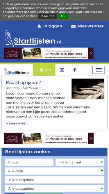 100%Adverteren op Startlijsten. Vergroot uw branding en maak reclame op de nummer 1 hippische site van Nederland. Zeer groot bereik!