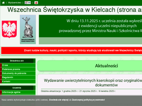 100%wszechnica świętokrzyska (wś), uczelnia, szkoła wyższa, uczelnia prowadzi studia i i studia ii stopnia, a także studia podyplomowe i specjalistyczne kursy. kierunki kształcenia to: wychowanie fizyczne, pedagogika i fizjoterapia.