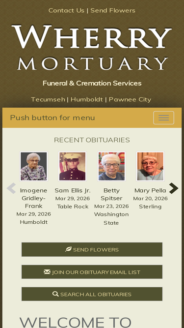 49%Pawnee City - Wherry Mortuary offers a variety of funeral services, from traditional funerals to competitively priced cremations, serving Tecumseh, NE and the surrounding communities. We also offer funeral pre-planning and carry a wide selection of caskets, vaults, urns and burial containers.