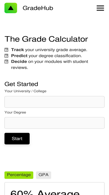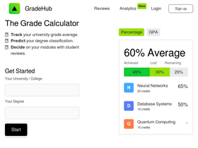 An easy way to track US College GPA and UK University percentage grades. Predict your final degree and find the best path to a GPA 4.0 or Honours 1st class.