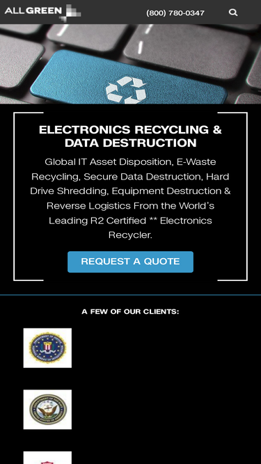 99%All Green Electronics Recycling offers Data Destruction, Global IT Asset Disposition, E-Waste Recycling, Hard Drive Shredding and much more...