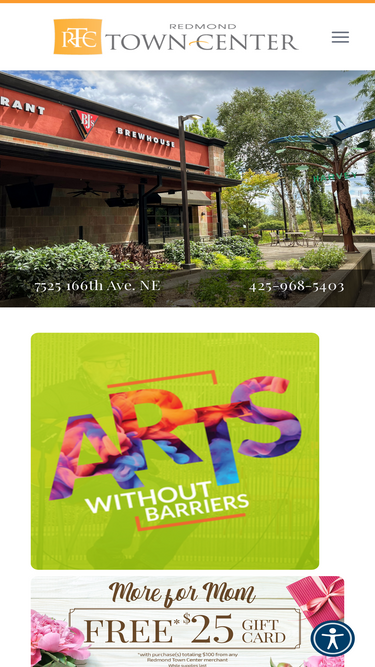 80%Redmond Town Center features two-level retail with over 120 stores, 20 restaurants, three hotels, 6 fitness studios, healthcare, arts and entertainment. And, with Microsoft offices on campus, along with several parks and trails nearby, you can shop, dine, workout, play and live within walking distance. We encourage you to gather, connect, and create new memories here.