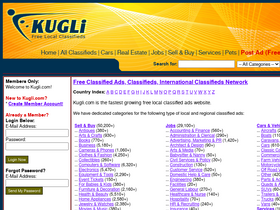 63%kugli.com is the free classifieds site and the international business networking site. free classified ads & global classified network. wheter you are an employer looking to expand internationally and searching for the right candidate, an employee looking for the perfect job, a trader or collector looking for new suppliers or buyers or a professional looking to communicate with people sharing the