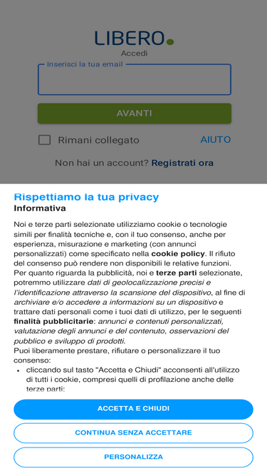 93%inserisci la tua user e password ed entra in libero mail. sei invece un nuovo utente? crea un nuovo account o richiedi l'aiuto di libero