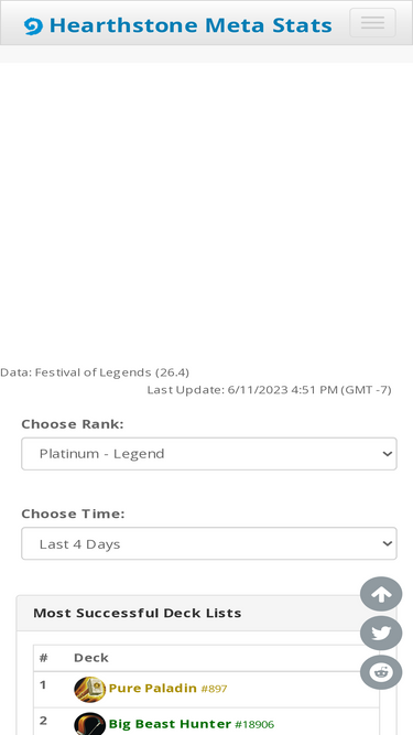 100%real-time hearthstone stats and meta reports generated using actual hearthstone games. game data is collected using our plugins for hearthstone deck tracker and trackobot. all stats are calculated using perils in paradise data.