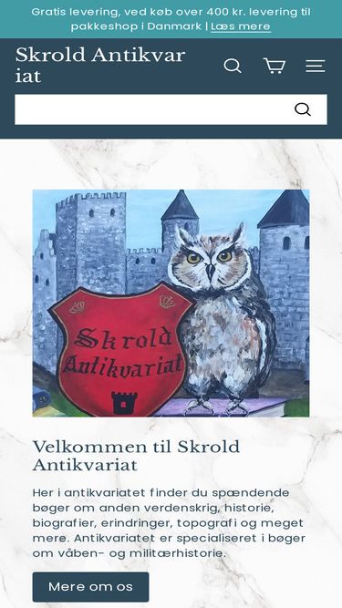 87%Velkommen til Skrold Antikvariat. En af Danmarks ældste online antikvariater. Hos os finder du tusindvis af antikvariske bøger. Vi er specialiserede i bøger om krigshistorie, militærhistorie, første og anden verdenskrig - men vi har også biografier, digtsamlinger og meget mere.