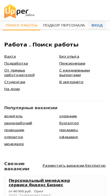 97%«аппер.работа.ру» удобный и эффективный поиск работы – тысячи предложений от прямых работодателей, каждый день свежие вакансии