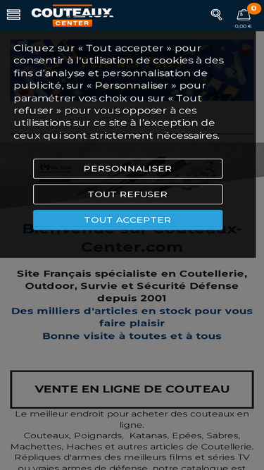 100%couteaux center: spécialiste de la vente en ligne de couteaux. plus de 11000 réf en ligne: victorinox, buck, spyderco, benchmade, etc... mais aussi poignards, épées, sabres, katanas, machettes, couteaux de lancer, haches de lancer, push dagger, shuriken...